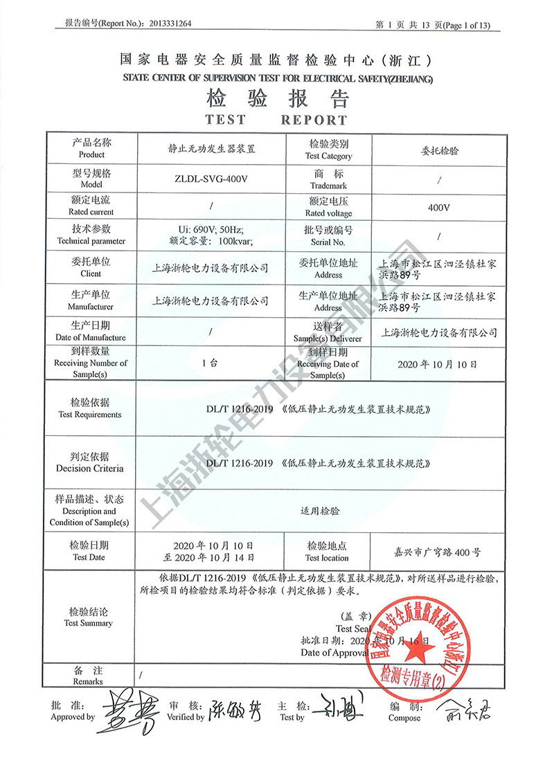 ZLDL-SVG-400V检验报告