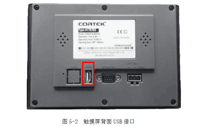 导出报表:点击“导出报表”,则会将查询的报表以*.CSV的格式自动保存在插在触摸屏背部的USB中,如下图触摸屏背面红色框所示位置。