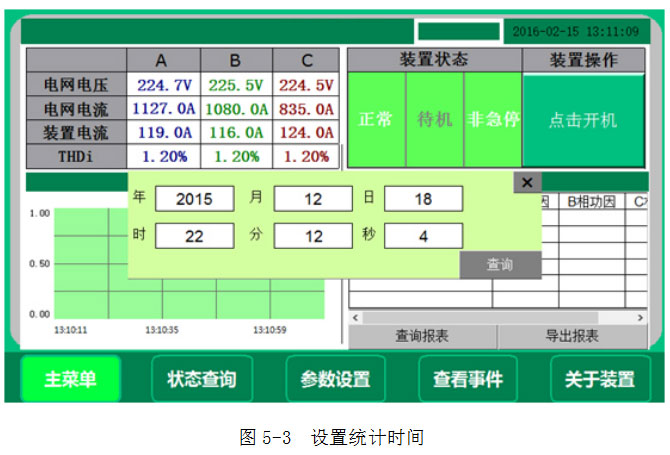 装置状态:“待机”或者“运行”。表示是在等待用户开机还是已经开机完成。在运行过程中,如果装置状态“正常”变成“故障”,则机器立刻停机,此处的状态立刻变为“待机”。